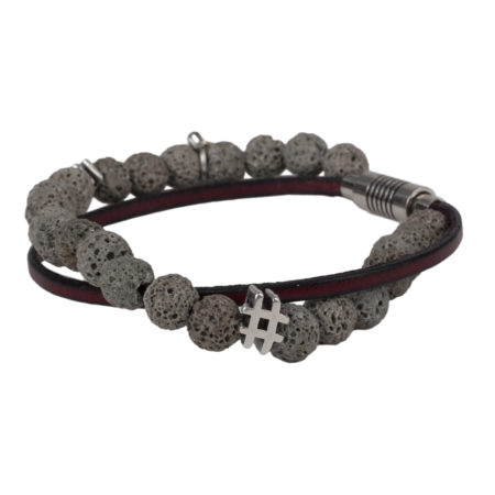 Ανδρικό διπλό βραχιόλι χειροποίητο φτιαγμένο από δέρμα, ημιπολύτιμους λίθους Λάβα και επάργυρα...