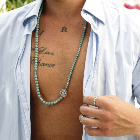 Ανδρικό κολιέ χειροποίητο φτιαγμένο από ημιπολύτιμους λίθους πάστα Τυρκουάζ (Turquoise paste), Αιματίτη...