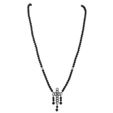 Ανδρικό κολιέ με σταυρό. Χειροποίητο μακρύ κολιέ φτιαγμένο από ημιπολύτιμους λίθους μαύρο Όνυχα...