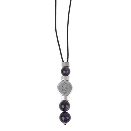 Ανδρικό κρεμαστό χειροποίητο φτιαγμένο από κορδόνι με ημιπολύτιμους λίθους Αμέθυστο και επάργυρα...