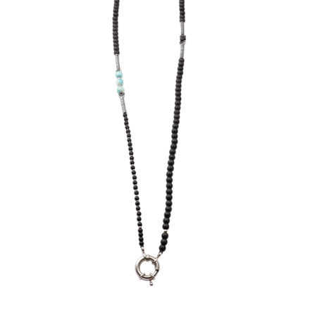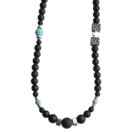 Ανδρικό κολιέ χειροποίητο φτιαγμένο από ημιπολύτιμους λίθους μαύρο Όνυχα, Αιματίτη και Τυρκουάζ...