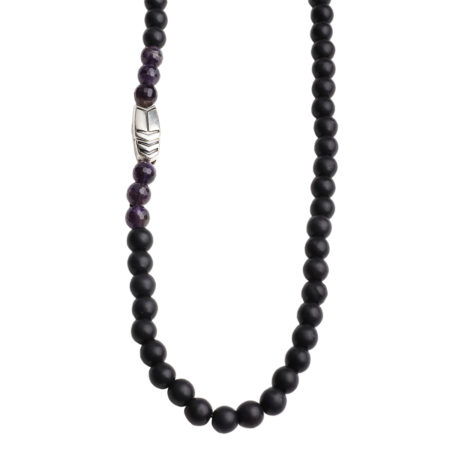 Ανδρικό κολιέ χειροποίητο φτιαγμένο από ημιπολύτιμους λίθους Χαολίτη και Αμέθυστο. Κούμπωμα μαγνήτης....