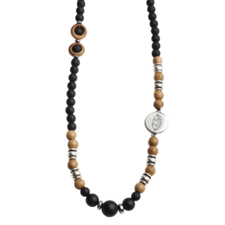 Ανδρικό κολιέ χειροποίητο φτιαγμένο από ημιπολύτιμους λίθους μαύρο Όνυχα με ξύλινα...