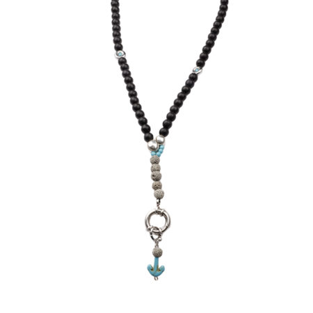 Ανδρικό κολιέ με Άγκυρα. Χειροποίητο κολιέ φτιαγμένο από ημιπολύτιμους λίθους μαύρο Όνυχα, Λάβα,...