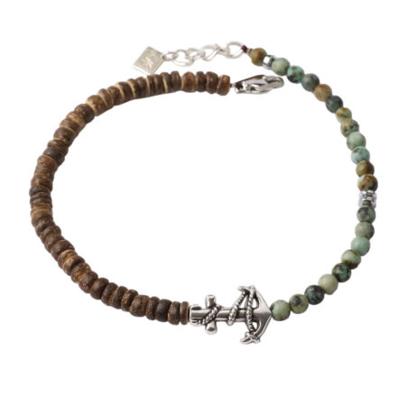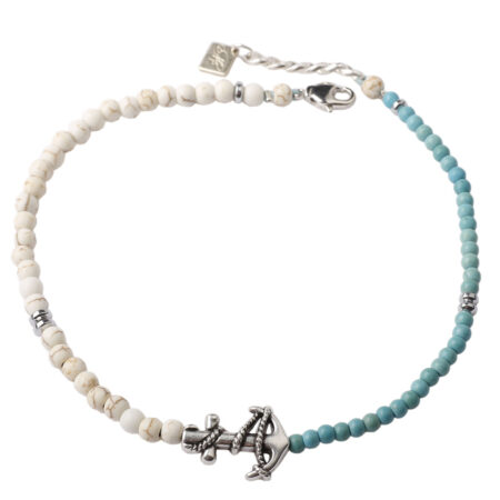 Ανδρικό βραχιόλι ποδιού με Άγκυρα. Χειροποίητο βραχιόλι φτιαγμένο από ημιπολύτιμους λίθους Τυρκουάζ...