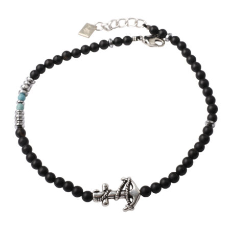 Ανδρικό βραχιόλι ποδιού με Άγκυρα. Χειροποίητο βραχιόλι φτιαγμένο από ημιπολύτιμους λίθους μαύρο Όνυχα,...