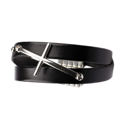 Ανδρικό δερμάτινο βραχιόλι με σταυρό. Χειροποίητο βραχιόλι φτιαγμένο από δέρμα με σταυρό από...