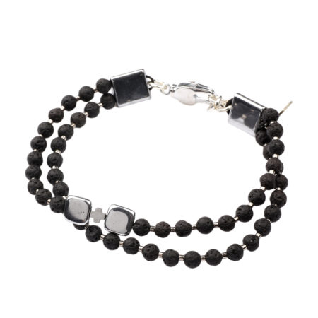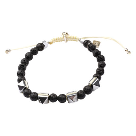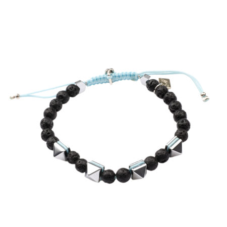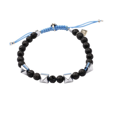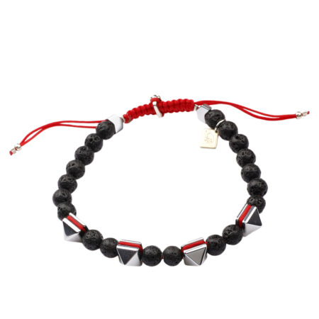 Ανδρικό βραχιόλι χειροποίητο φτιαγμένο από ημιπολύτιμους λίθους Λάβα και Αιματίτη, ανθεκτικό κορδόνι...