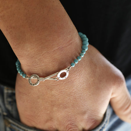 Ανδρικό βραχιόλι με επάργυρα στοιχεία. Χειροποίητο βραχιόλι φτιαγμένο από ημιπολύτιμους λίθους πάστα Τυρκουάζ,...