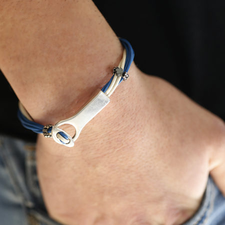 Ανδρικό βραχιόλι χειροποίητο φτιαγμένο από ανθεκτικό κορδόνι με επάργυρα στοιχεία. Το μήκος του...