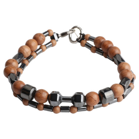 Ανδρικό διπλό βραχιόλι χειροποίητο φτιαγμένο από ημιπολύτιμους λίθους Χαολίτη και Αιματίτη με...