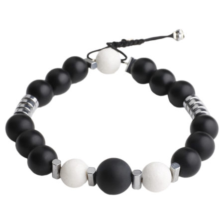 Ανδρικό βραχιόλι χειροποίητο φτιαγμένο από ημιπολύτιμους λίθους μαύρο Όνυχα, λευκό Κοράλι και...