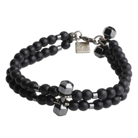 Ανδρικό διπλό βραχιόλι χειροποίητο φτιαγμένο από ημιπολύτιμους λίθους μαύρο Όνυχα και Αιματίτη...