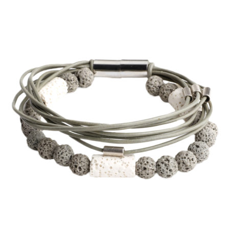 Ανδρικό διπλό βραχιόλι χειροποίητο φτιαγμένο από δέρμα, ημιπολύτιμους λίθους Λάβα και επάργυρα...