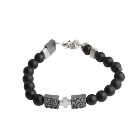 Ανδρικό βραχιόλι χειροποίητο φτιαγμένο από ημιπολύτιμους λίθους μαύρο Όνυχα και Αιματίτη με...