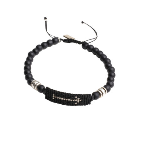 Ανδρικό βραχιόλι χειροποίητο φτιαγμένο από χάντρες Miyuki Delica, ημιπολύτιμους λίθους μαύρο Όνυχα...